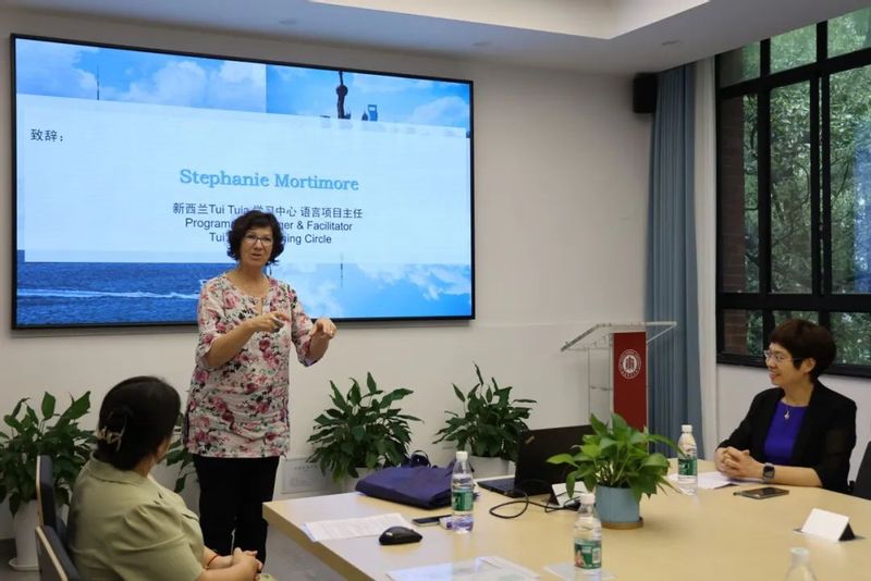 Stephanie Mortimore随后用新西兰官方语言——英语和新西兰手语表达了自己的感激之情。她非常感谢教育部中外语言交流合作中心的支持,以及金沙js9线路中心主页细致的安排和组织,让老师们有机会来华学习,大家对这次的研修之旅期待已久,已经迫不及待想要开始体验行程了。随后,她带领中新两国的老师们一起合唱起毛利语歌曲Te Aroha,表达了爱与和平的美好祝愿。