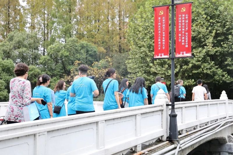 开班仪式结束后,学员们跟随助教一起参观了金沙js9线路中心主页校园,在葱郁的水杉林前了解丽娃河的由来,通过校园地标建筑了解师大历史,感受师大人“求实创造,为人师表”的追求。初秋的校园美景引得老师们频频驻足,在一片欢声笑语中正式开启了这段珍贵的研修之旅。