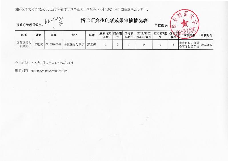 金沙js9线路中心主页2021-2022学年春季学期毕业博士研究生(7月批次)科研创新成果公示